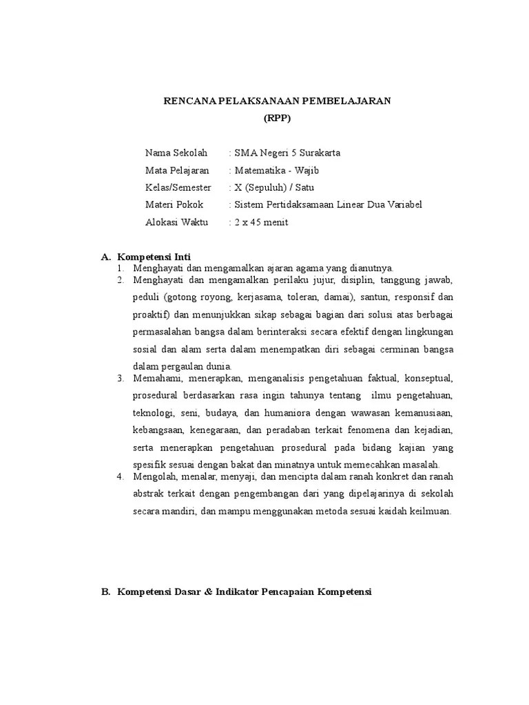 Contoh Rpp Materi Sistem Pertidaksamaan Linear Dua Variabel Kelas X : Bank Soal Un Sma Contoh Soal Persamaan Linear Dua Variabel Bentuk Pecahan Dan Penyelesaiannya - Rencana pelaksanaan pembelajaran (rpp) sekolah :